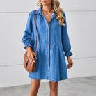 Dê um toque especial ao seu guarda-roupa do dia a dia com a Vanda, o vestido feminino em estilo cardigã feito de algodão denim lavado em cor lisa.