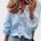 - Elegância atemporal: O corte refinado e a aparência clássica tornam esta blusa uma favorita duradoura.