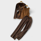- Design prático e elegante: Inclui uma blusa, calça e um cachecol ou acessório para manter o estilo e o conforto.