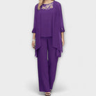 - Set: 3 pieces (cardigan, trousers, and skirt)