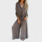 Eleva o teu guarda-roupa com este conjunto sofisticado e confortável, composto por uma camisa leve de tecido fluido e umas calças de corte reto, elegantes e práticas. A camisa de mangas compridas oferece um toque fresco e versátil, perfeita para usar sozinha ou combinada, enquanto as calças garantem um caimento confortável que valoriza a silhueta. Ideal para ocasiões casuais ou para o escritório, este conjunto une estilo contemporâneo e conforto, tornando-se uma peça-chave para a tua coleção de primavera/verão.