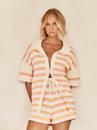- Moderno e Estiloso: O Conjunto Zara apresenta um design atual com riscas coloridas que fazem uma afirmação de estilo marcante. Inclui um top de mangas curtas e uns calções a condizer, perfeitos para um look coordenado.