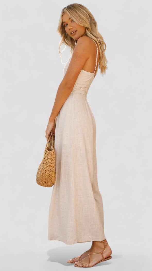 Este vestido combina elegância descomplicada com um toque de frescura ideal para dias longos de sol. Com um design fluido, alças finas e um corte que valoriza a silhueta, ele transforma qualquer ocasião num momento especial. Seja numa esplanada ou numa escapadinha à praia, este é o look que te faz sentir leve, feminina e pronta para aproveitar o melhor da estação.