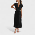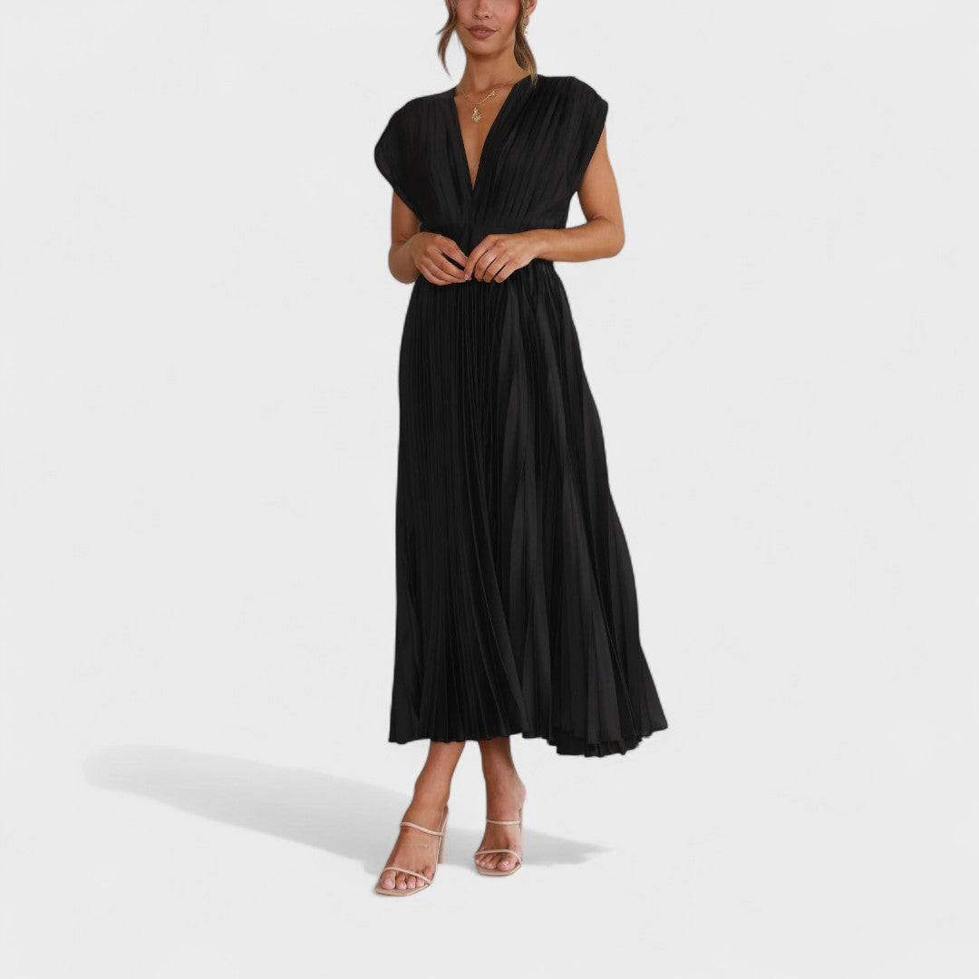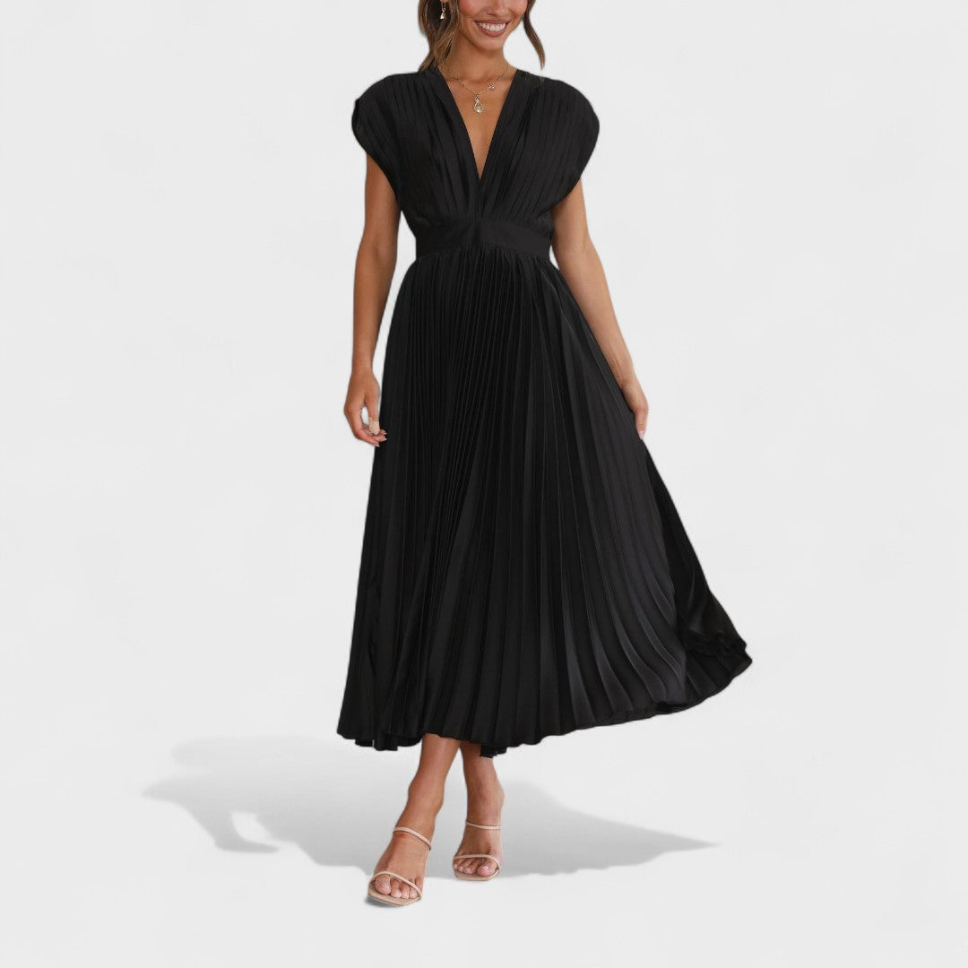 • Design atemporal — O plissado e o preto clássico tornam este vestido uma peça versátil que nunca sai de moda.