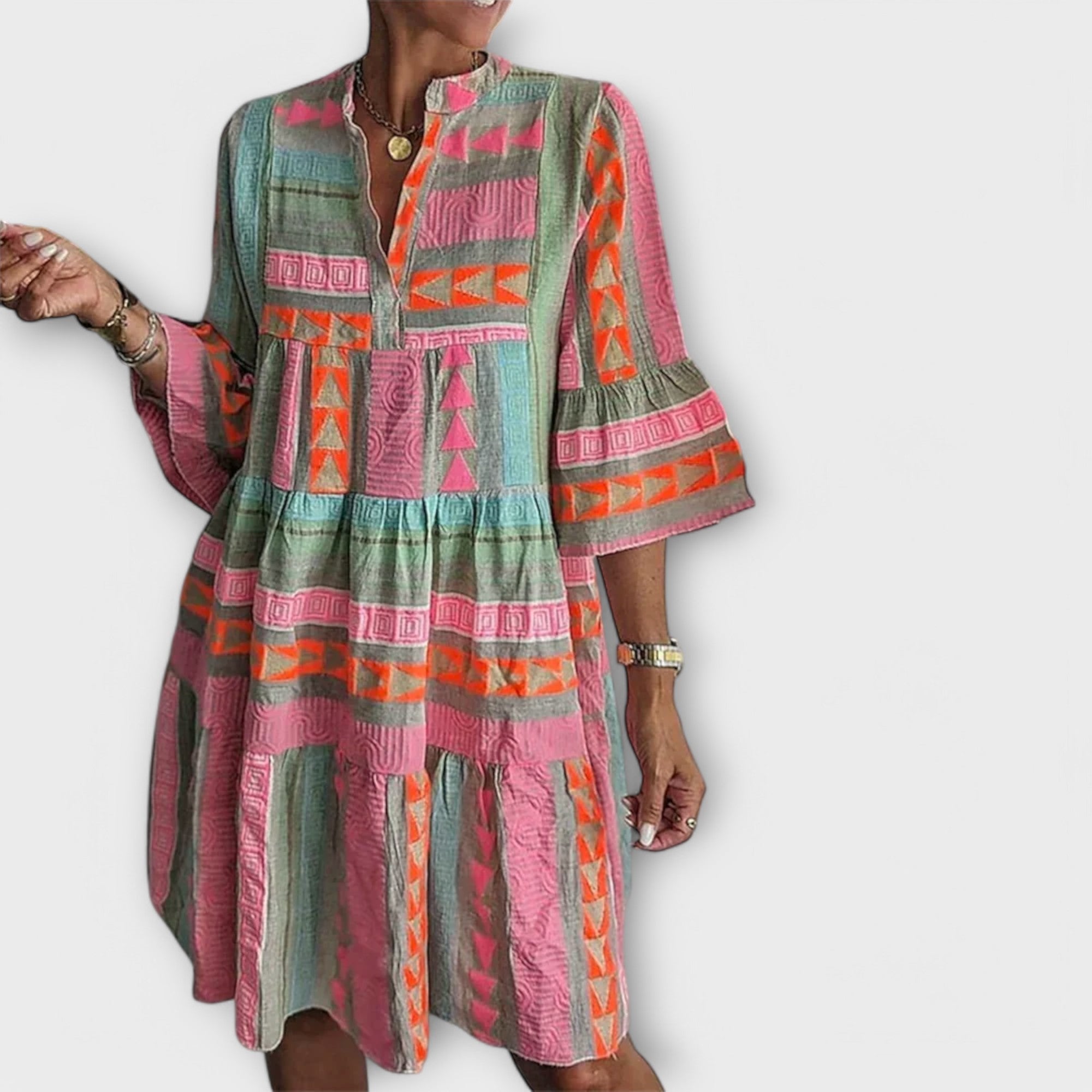 O vestido midi Mabel combina elegância e praticidade, garantindo um visual sofisticado para qualquer ocasião.