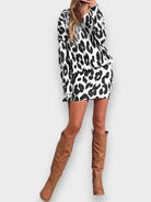 O Sandra™ Vestido Leopardo é uma peça ousada e moderna. Este vestido curto, que termina mesmo acima dos joelhos, apresenta um estampado de leopardo que segue as últimas tendências. Com mangas compridas e um corte favorecedor, é ideal para saídas à noite ou eventos especiais.