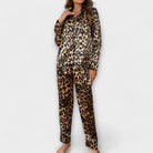 Conjunto de Pijama de Cetim com Estampa de Leopardo